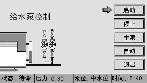 在主畫(huà)面上,按給水泵進(jìn)入“給水泵操作”畫(huà)面。如圖 4 所示。
